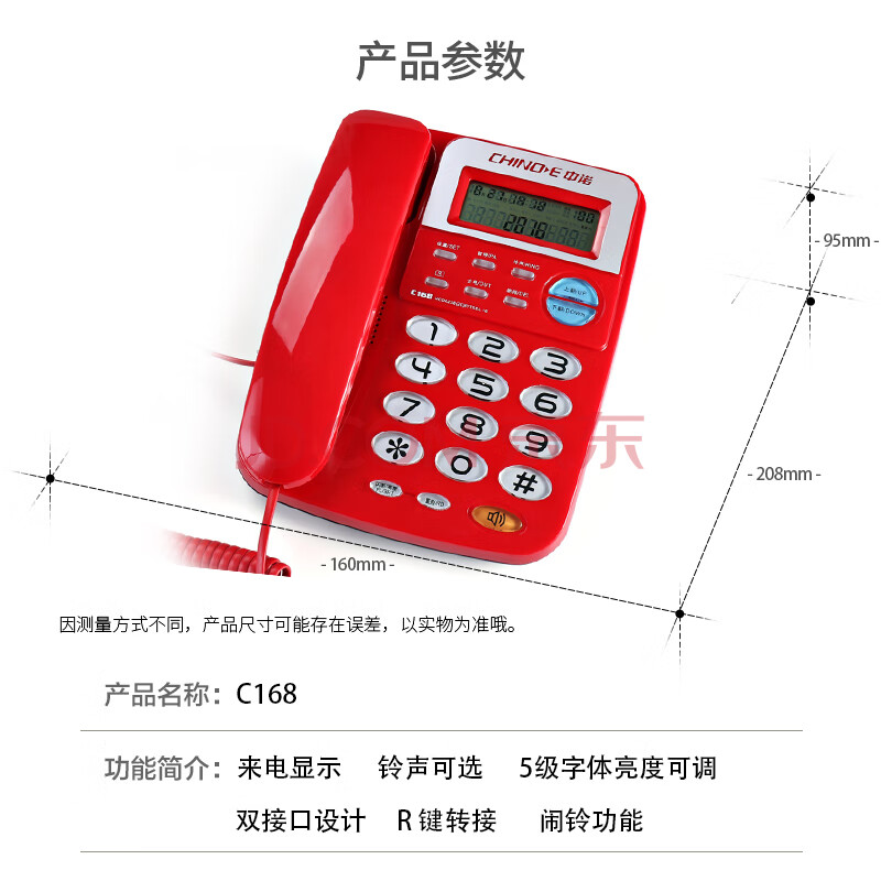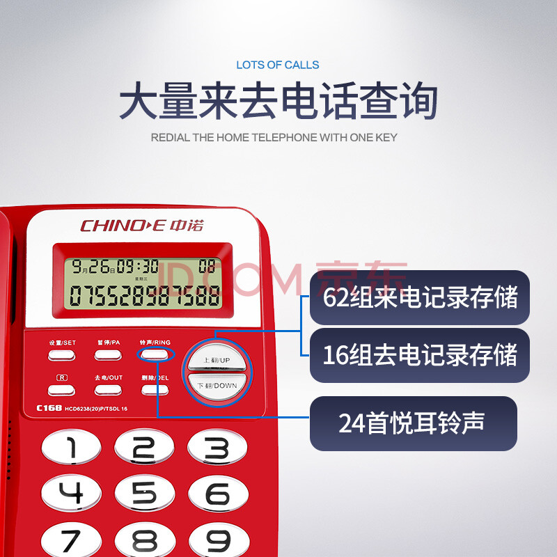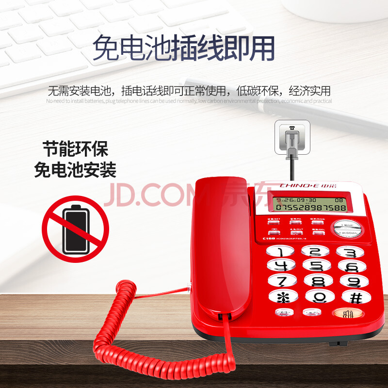 商品相册:中诺电话机座机固定电话办公家用座机电话R键转接免电池双接口C168红色办公伴侣第