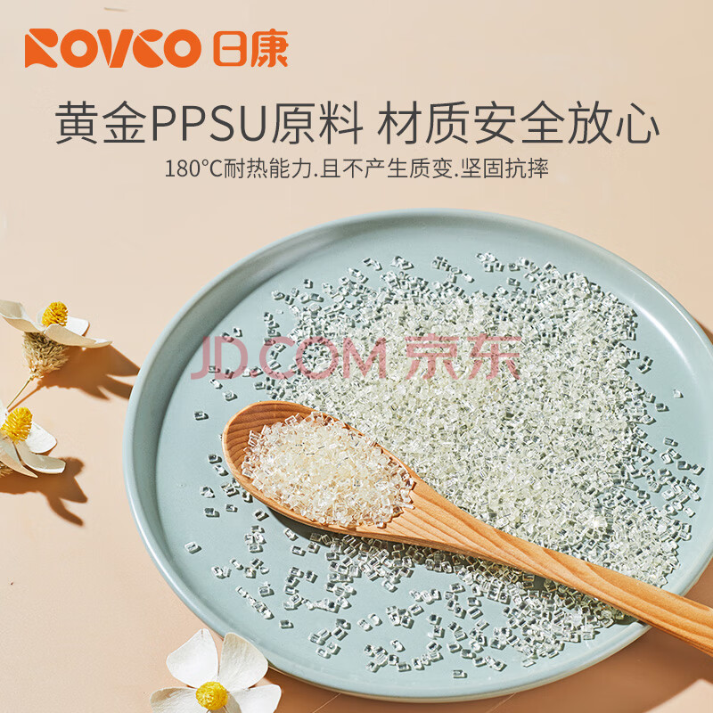 商品相册:日康(rikang)吸管奶瓶 9个月+带重力球宽口奶瓶 PPSU带手柄300ml N1062 蓝色第