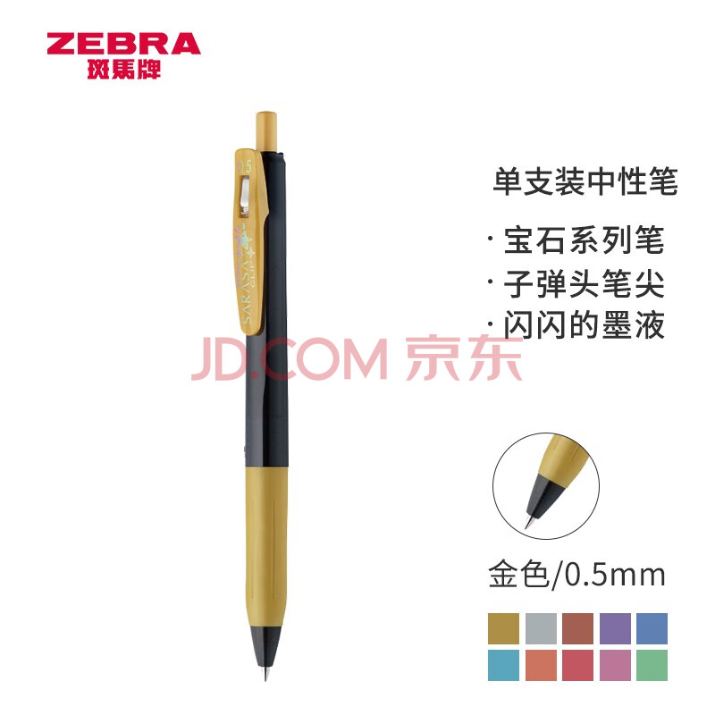 商品相册:斑马牌(ZEBRA)JJ15宝石系列中性笔 0.5mm按动中性笔子弹头签字笔 学生手账笔标记笔 JJ15-GO 金色第