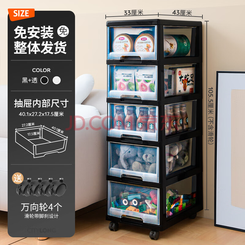 商品相册:禧天龙抽屉式收纳柜床头柜置物柜玩具储物柜夹缝柜五斗柜收纳箱 五层第1张/共4