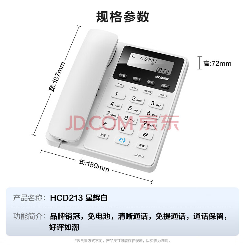 商品相册:步步高(BBK)电话机座机 固定电话 办公家用 免电池 清晰通话 HCD213星辉白第