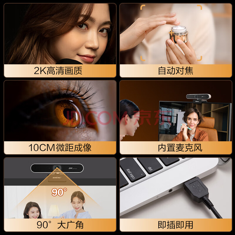 商品相册:奥尼(aoni)电脑摄像头 直播摄像头高清视频会议直播带货大广角 2K自动对焦带麦克风USB考研复试会议 A30Pro第