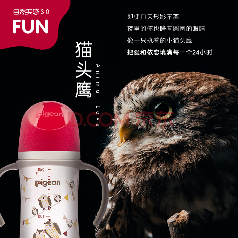 商品相册:贝亲(Pigeon)PPSU双把手防胀气奶瓶240ml 猫头鹰 L号奶嘴 6月+ AA221第