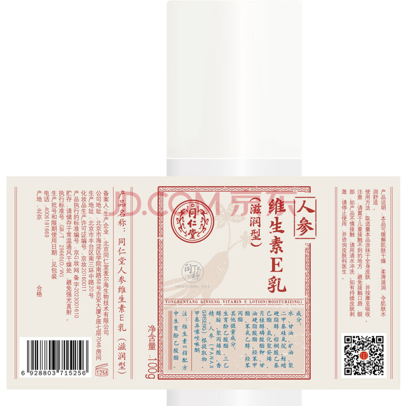 商品相册:同仁堂人参维生素E乳300g(按压式)乳霜身体乳护手补水保湿滋润第