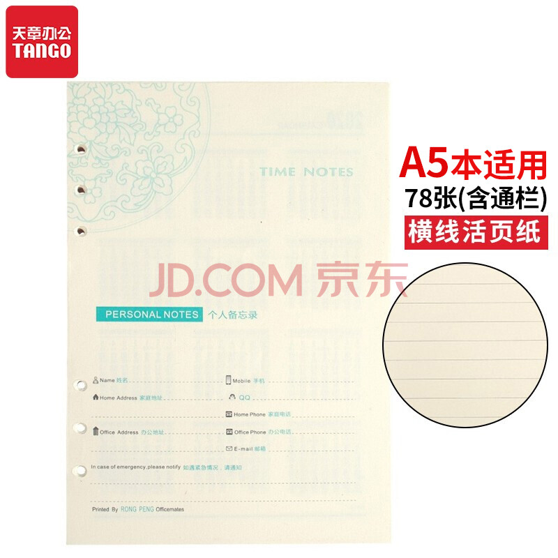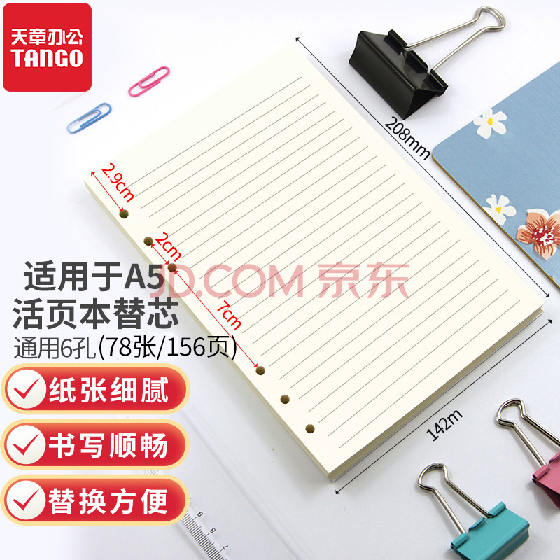 商品相册:天章(TANGO)A5活页替芯纸横线款加厚100g 适用6孔活页本考研错题作业日常笔记会议记录可拆卸通用替换芯 78张第