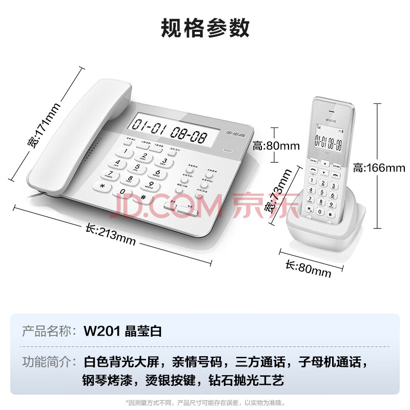 商品相册:步步高(BBK)无绳电话机 无线座机 子母机 办公家用 背光大屏大字体 大按键 W201晶莹白 一拖一第