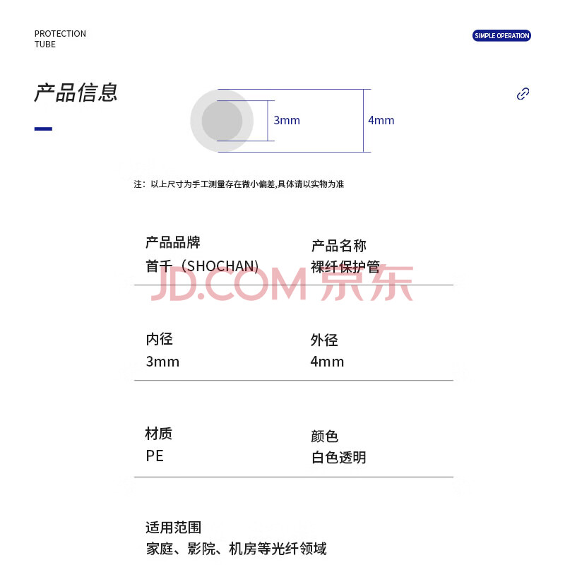 商品相册:首千(SHOCHAN)光纤裸纤保护管 光交箱配线架尾纤保护套管 圆形3*4mm 100米 SQ-LQ34第
