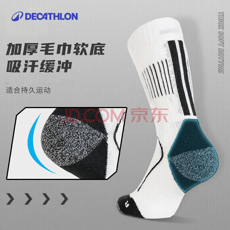 商品相册:迪卡侬男健身长袜子长筒高筒MSTS560系列中帮—白色3双装43-46码2666941第