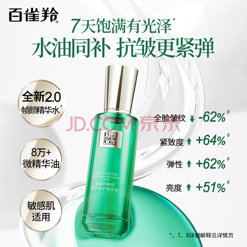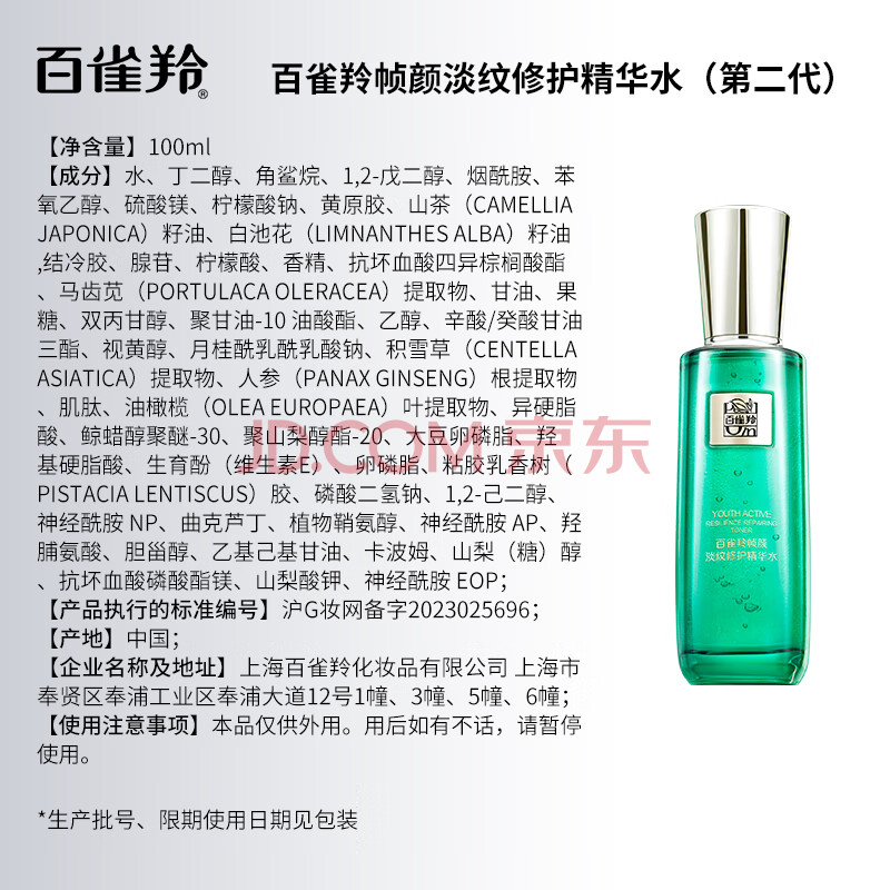 商品相册:百雀羚 精华水草本帧颜淡纹修护精华水100ml紧致淡纹品质国货生日礼物第