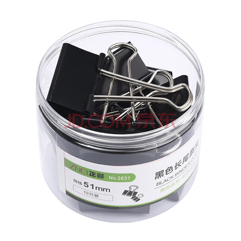 商品相册:递乐 12只51mm黑色长尾票夹金属票据夹燕尾夹铁夹子办公文具 大号2631第
