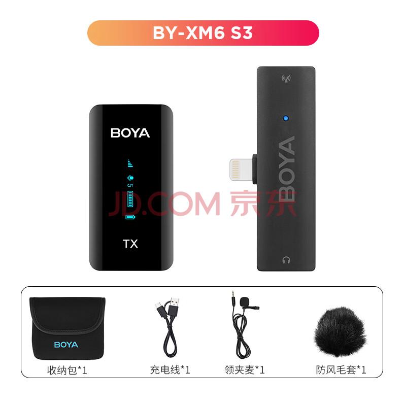 商品相册:BOYA 博雅麦克风XM6无线领夹麦克风小蜜蜂胸麦 户外手机直播volg短视频收音麦无线话筒 Lightning版第