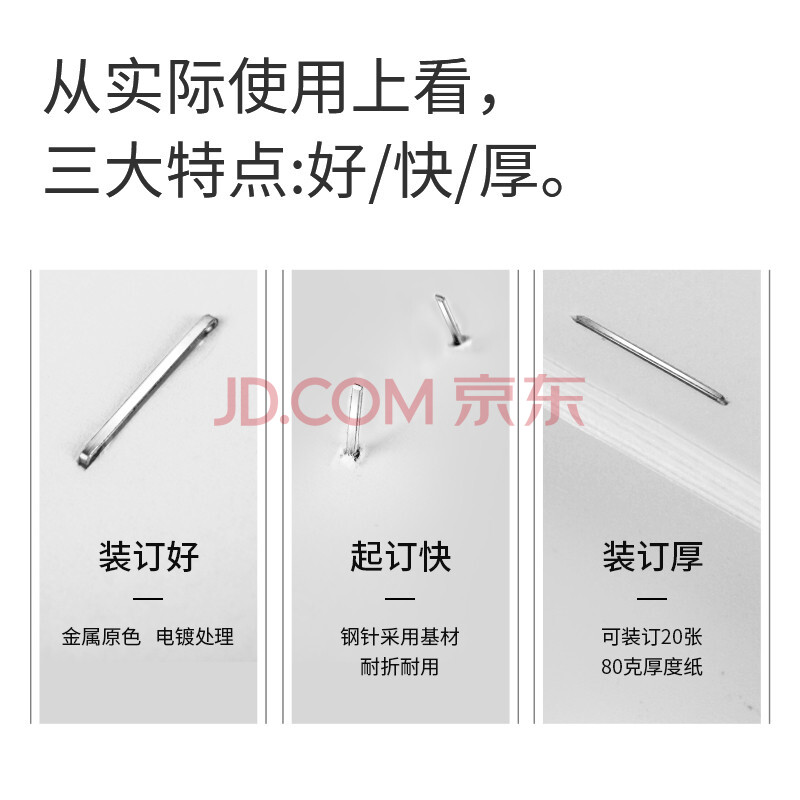 商品相册:得力(deli)26/6易穿透省力订书钉 省力型订书针 10盒装(1000枚/盒)银色JD0012S第