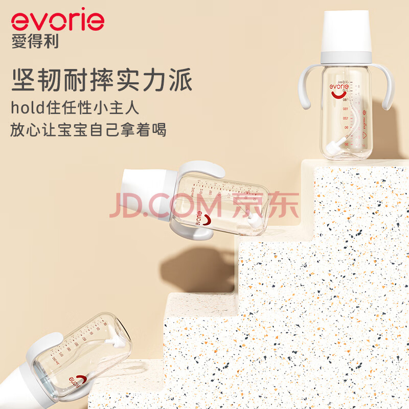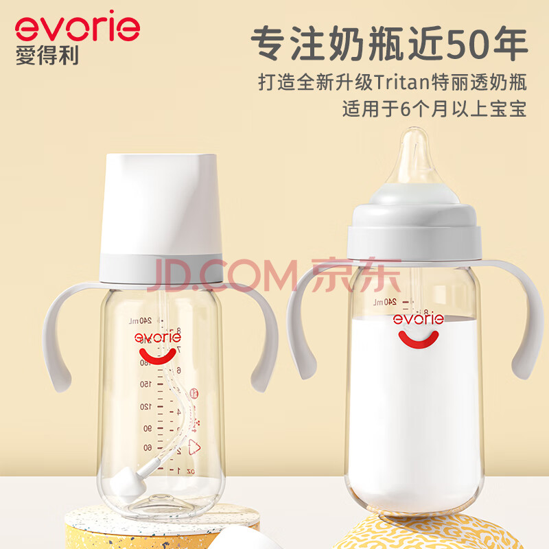 商品相册:爱得利(evorie)婴儿奶瓶 宽口径双手柄带重力球Tritan奶瓶240ml 灰(6个月+)第