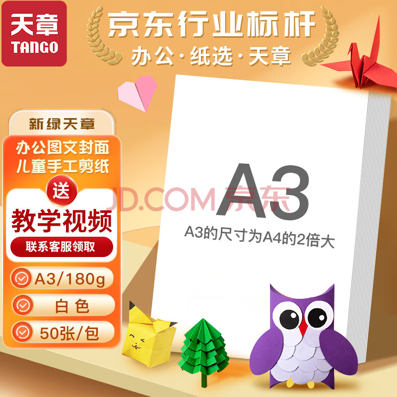 商品相册:天章 (TANGO)【老师推荐】A3硬卡纸白色加厚打印纸 考试考研复习草稿纸 学生手工折剪绘画纸 白色180g 50张/包第