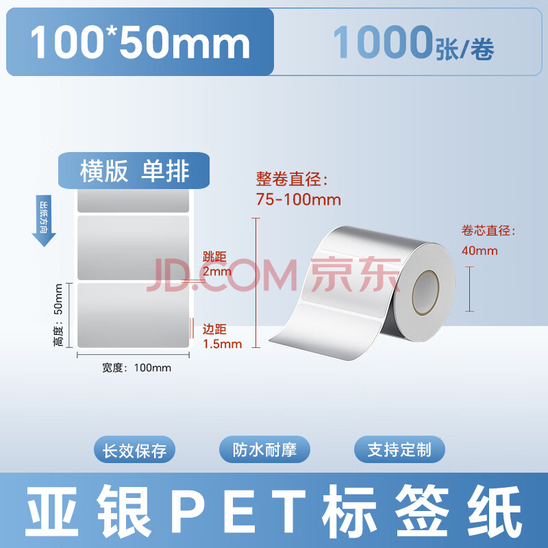 商品相册:远平条码 亚银PET不干胶标签条码打印纸 横板100mm*50mm*1000张 支持定制第