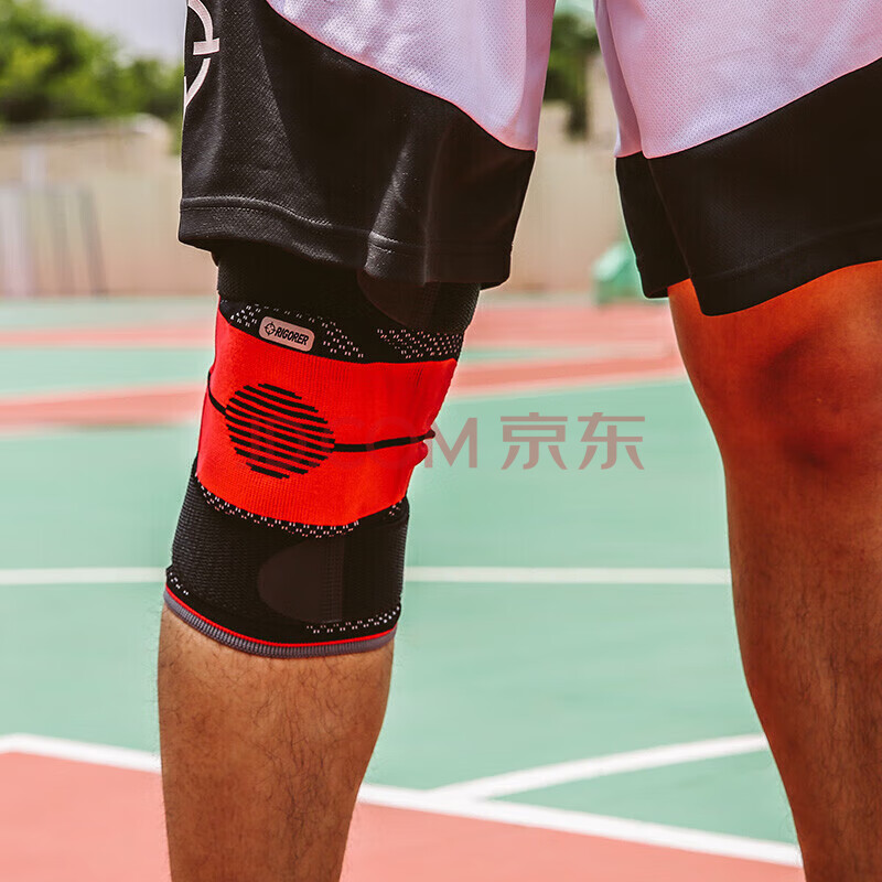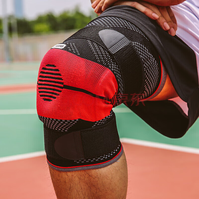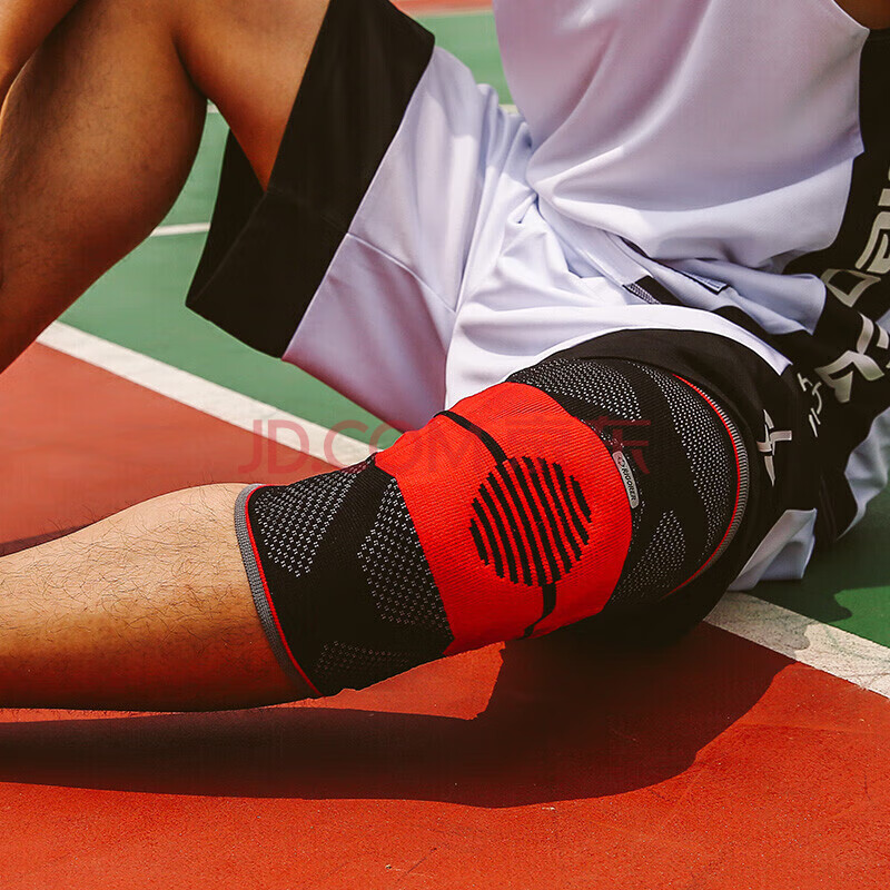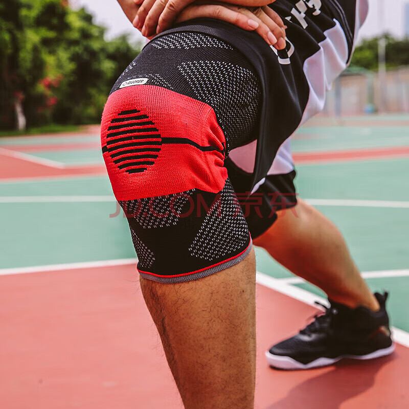 商品相册:准者护膝篮球男女士专业运动跑步装备关节护具加长款防撞高弹透气排汗(单只装) DH-1001 黑红S第1张/共6