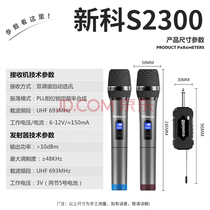 商品相册:新科(Shinco)S2300手持麦克风U段无线话筒防啸叫家庭KTV唱歌演讲舞台K歌会议带接收器第