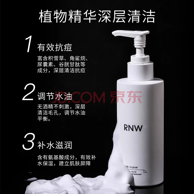 商品相册:如薇(RNW)洗面奶男女士氨基酸洁面乳200g去油深层清洁痘敏肌角质死皮黑头第