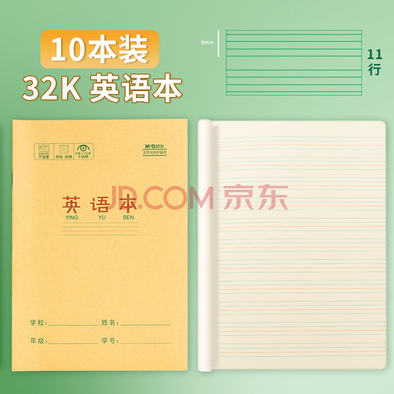商品相册:晨光(M&G)文具32K英语本 11行小学生作业本子抄书练习本英文本四线格读书笔记本22张10本装K32273第