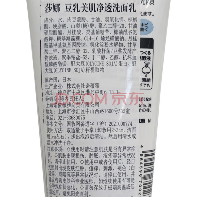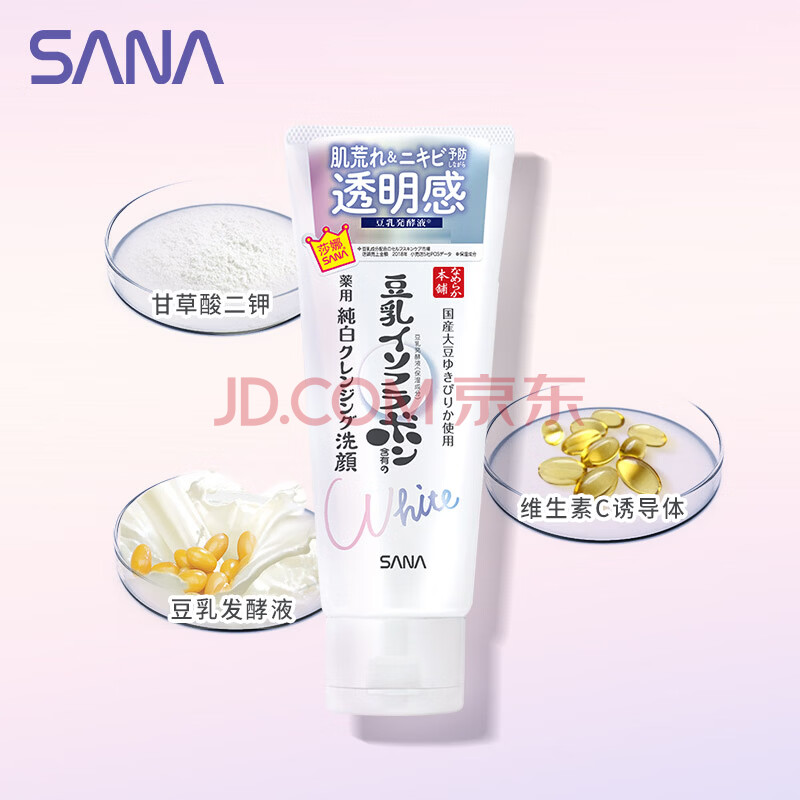 商品相册:莎娜(SANA)豆乳美肌净透洗面奶女维c面部保湿温和清洁洗面乳150g第