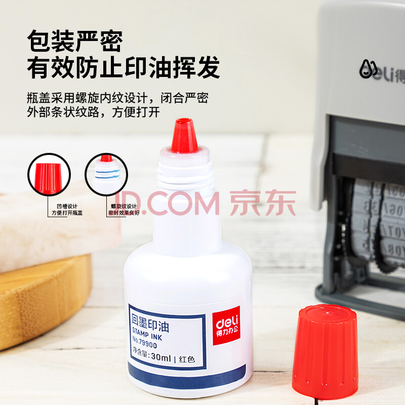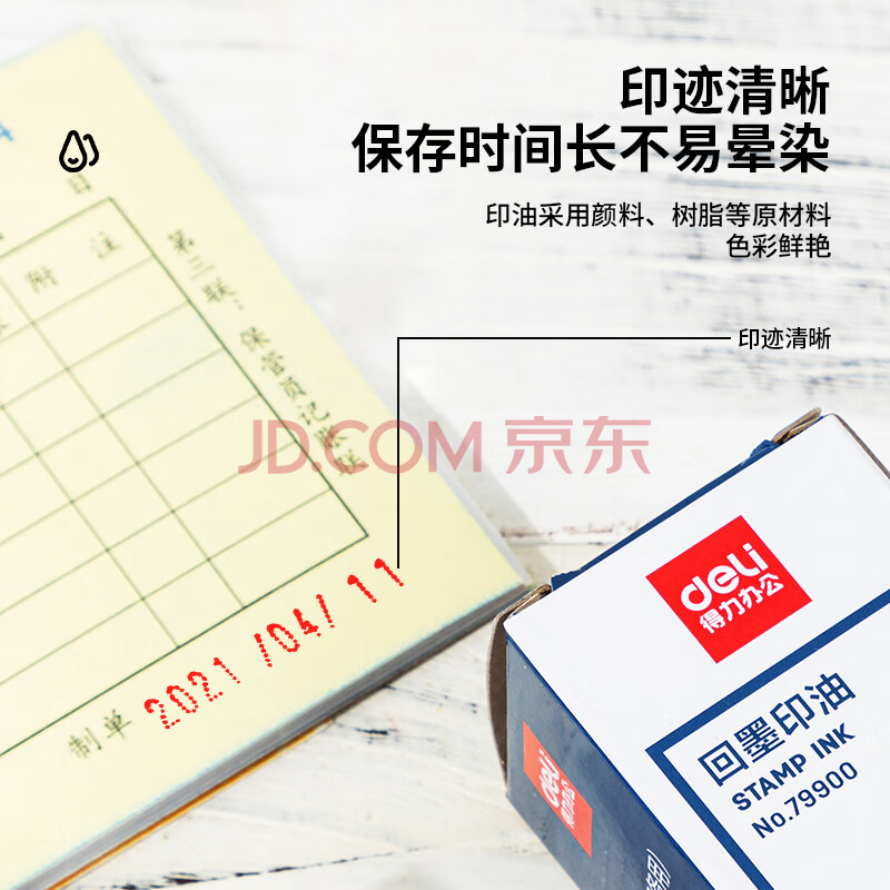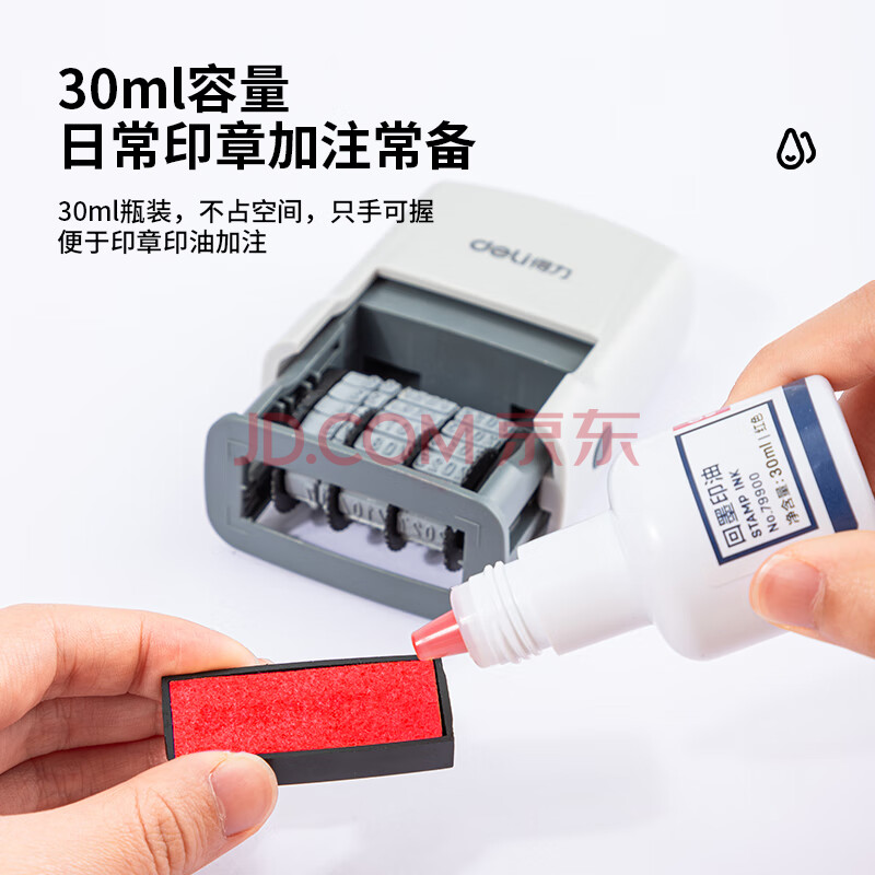商品相册:得力(deli)30ml水性回墨印油 回墨印章专用印油 发票合同财务印章印油 红色79900第