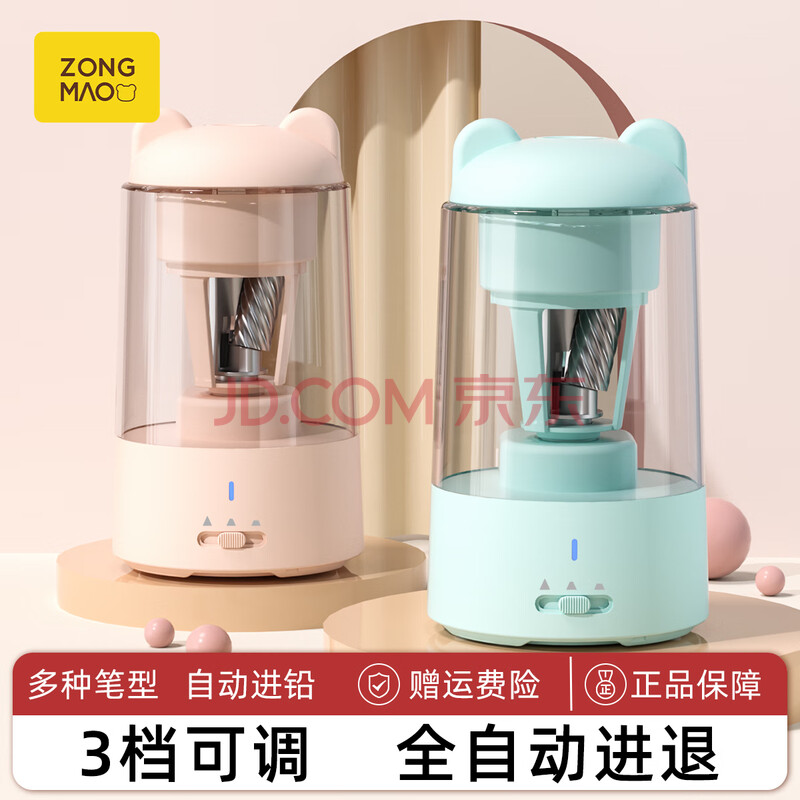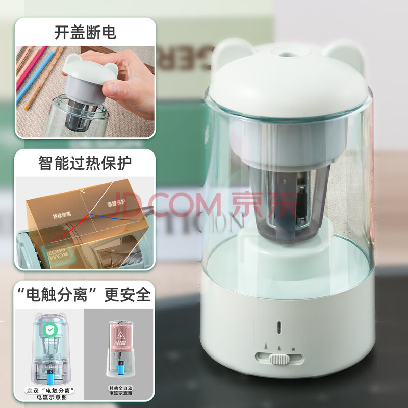 商品相册:宗茂自动削笔器学生练字电动削笔刀可充电锂电池三挡粗细调节卷笔刀绿色JY-023第