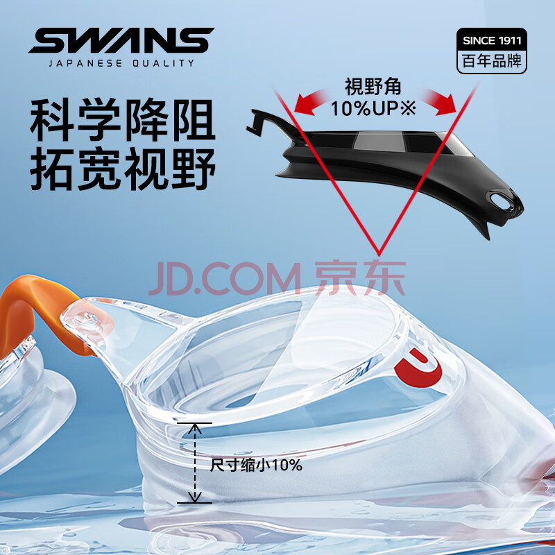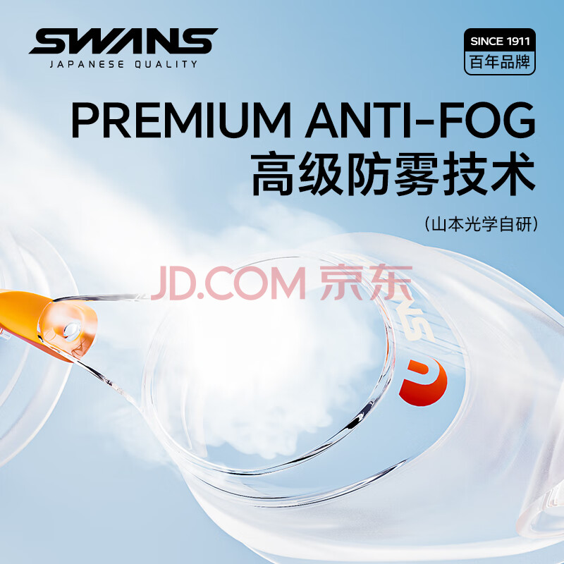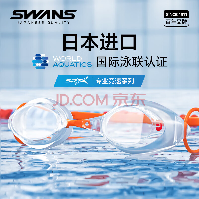 商品相册:SWANS泳镜日本进口男女防水防雾高清专业竞速平光潜水游泳眼镜 橙白第
