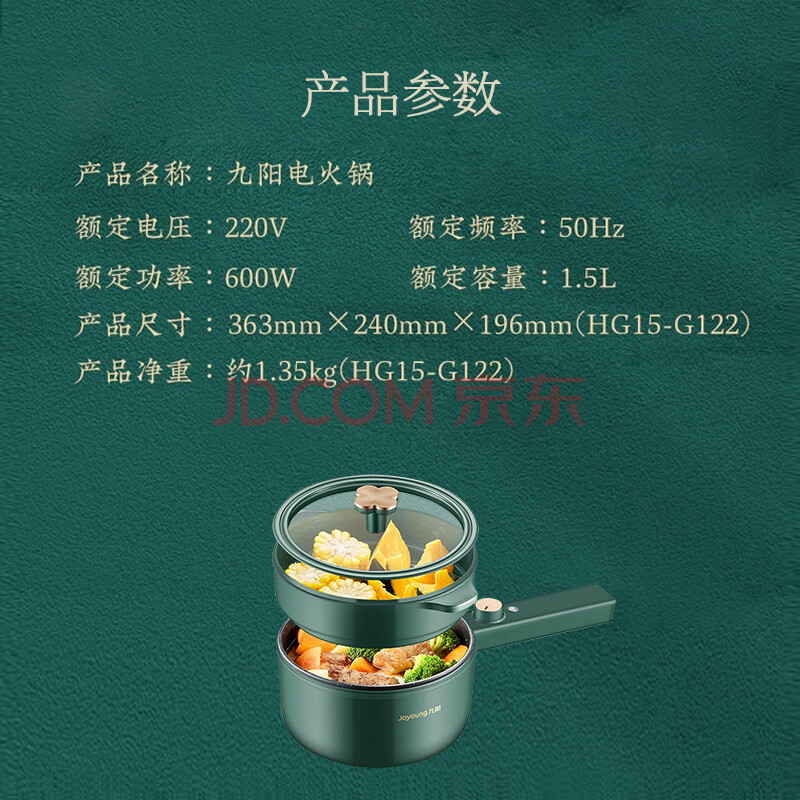 商品相册:九阳(Joyoung)电火锅 宿舍小电锅多功能电煮锅电蒸锅电炒锅 HG15-G122【企业采购】 【支持一件代发】第