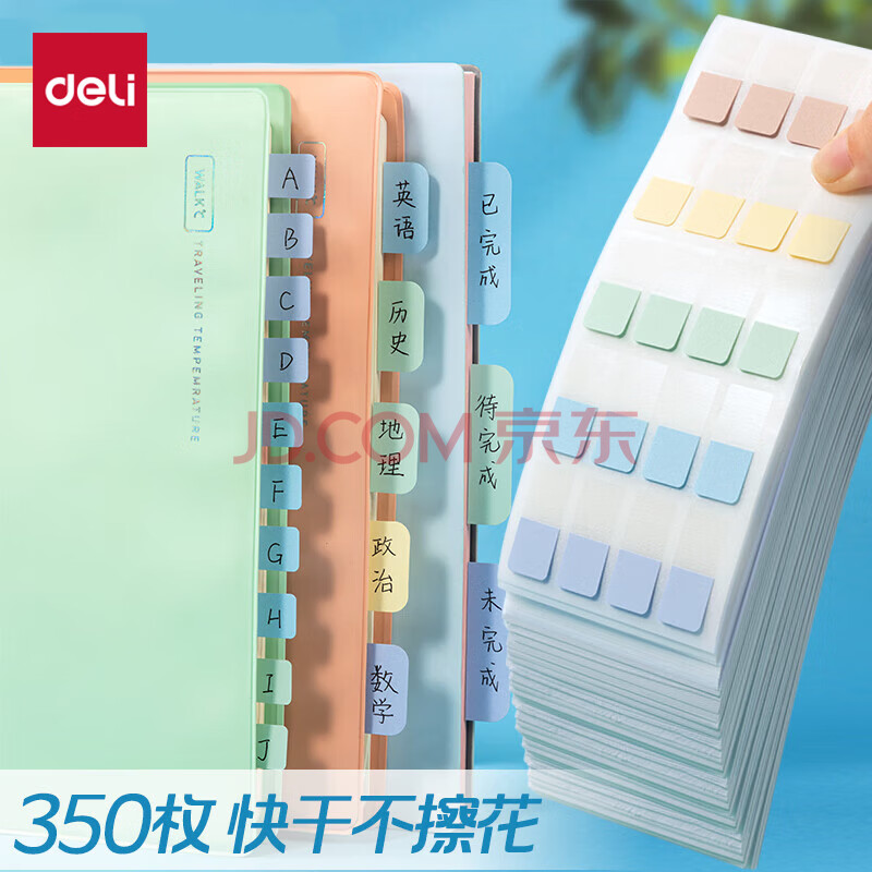 商品相册:得力(deli)350枚多规格索引标签贴纸 莫兰迪色荧光膜 半透明 21699开学礼物第