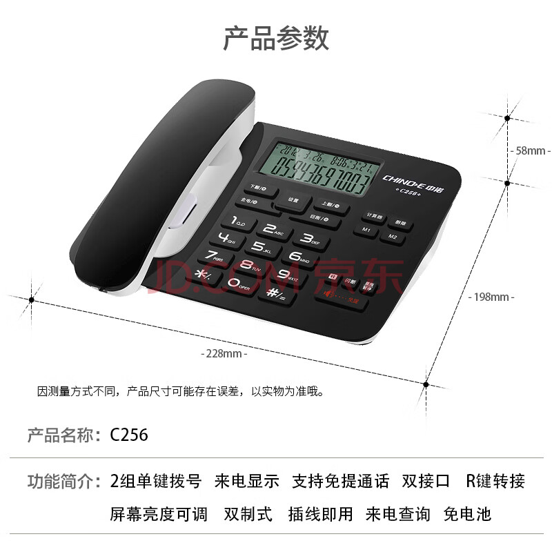 商品相册:中诺电话机座机固定电话有绳板机R键转接免提免打扰来电显示有线固话座机坐式C256黑色办公家用老人第