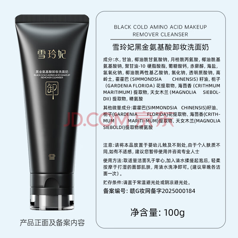 商品相册:雪玲妃黑金洗面奶氨基酸卸妆去黑头深层清洁面乳80g温和控油敏感肌男女第