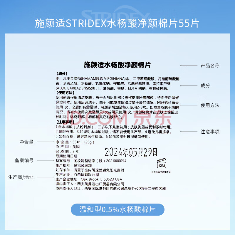 商品相册:施颜适美国进口水杨酸净颜棉片55片(温和型)洁面二次清洁控油祛痘第