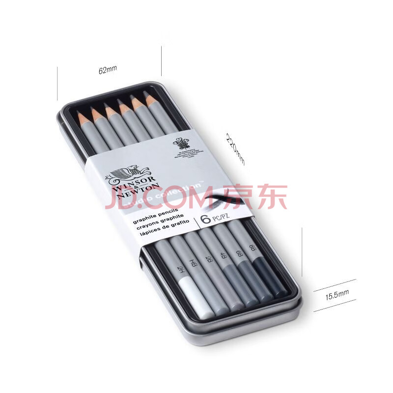 商品相册:温莎牛顿【弗洛伊德同品牌】素描铅笔涂鸦填色素描铅笔专业手绘美术绘画铅笔6支石墨铅笔套第