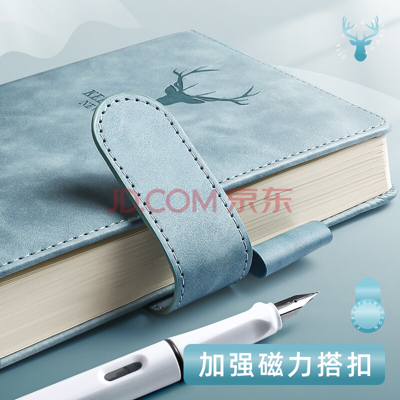 商品相册:金值a5带磁扣笔记本子超厚商务记事本加厚大学生日记本办公文具用品皮面本子工作本会议记录本 烟雾蓝第