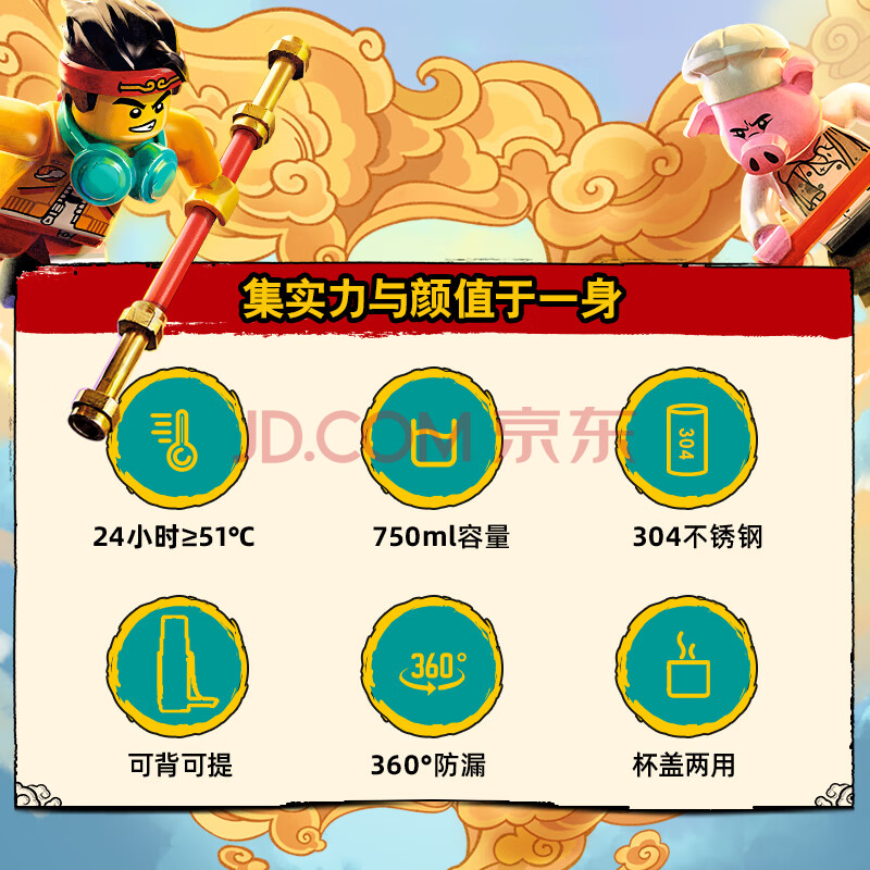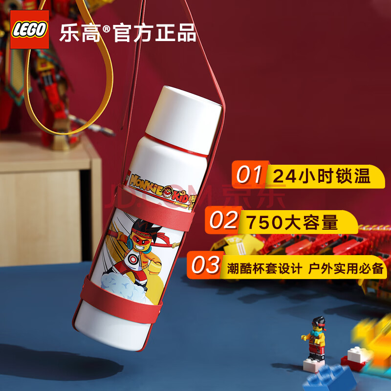 商品相册:乐高(LEGO)悟空小侠背带保温杯750ml水杯便携大容量儿童学生男女礼物白色第