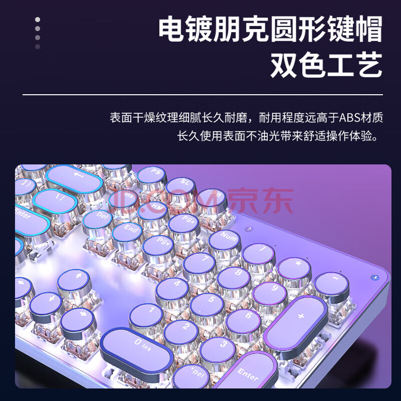 商品相册:前行者(EWEADN)TK950无线蓝牙朋克机械键盘鼠标套装有线三模办公游戏电脑笔记本青轴复古外设104键 粉色白光第