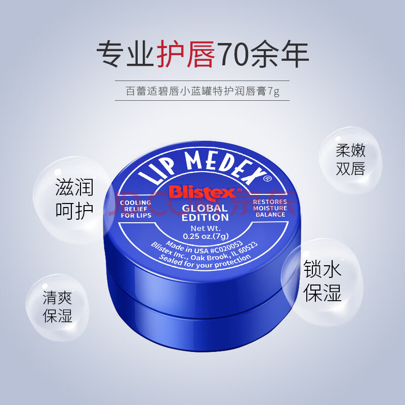 商品相册:百蕾适碧唇小蓝罐特护润唇膏 7g 保湿润泽舒缓修护第