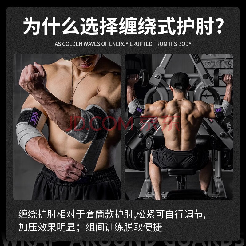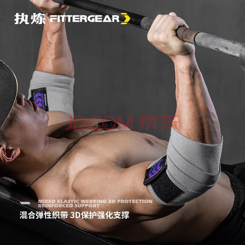 商品相册:FITTERGEAR执炼健身缠绕护肘男卧推力量举绷带专业护肘关节捆绑式护具第