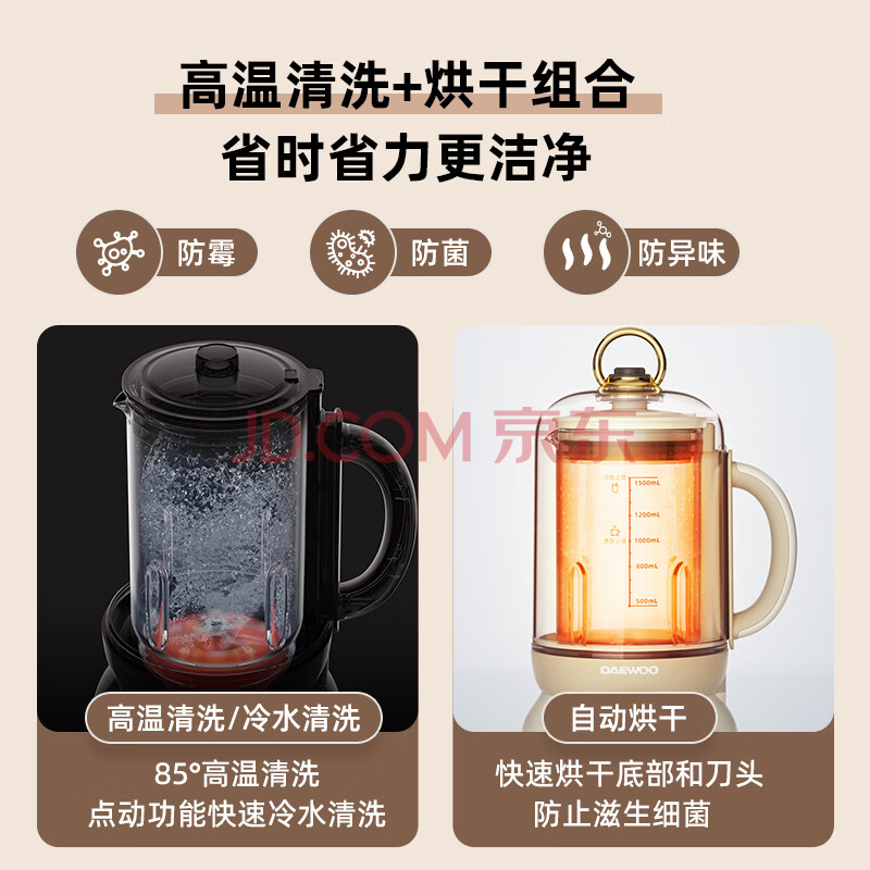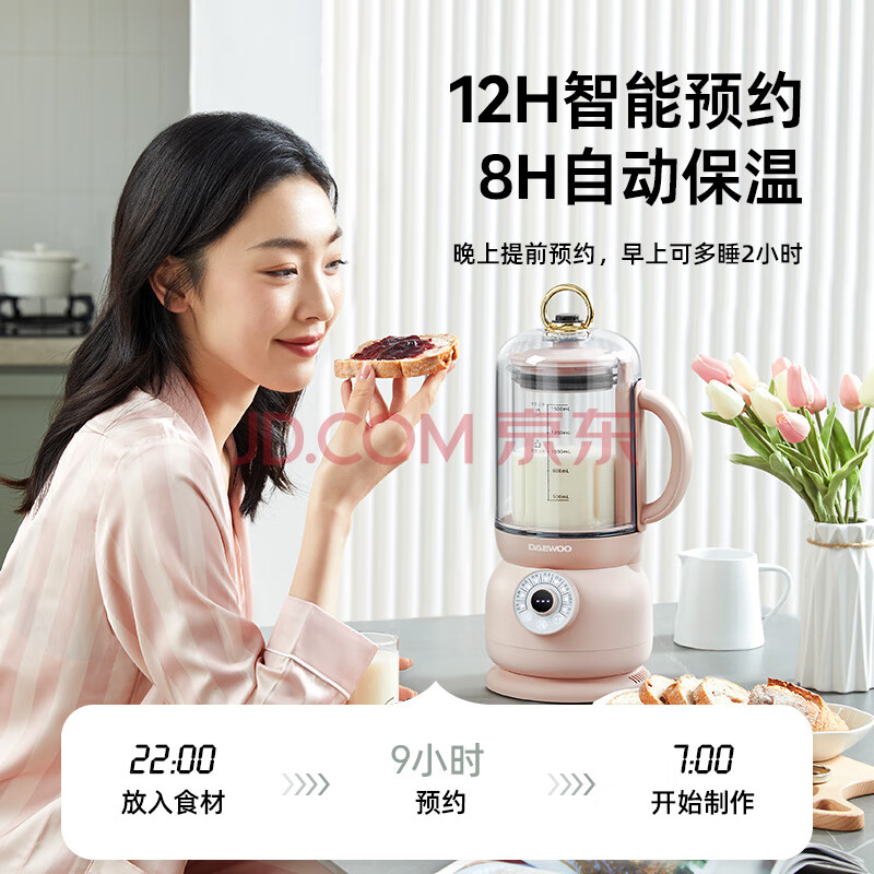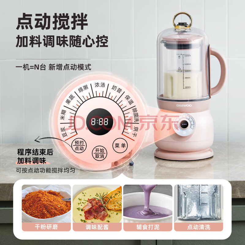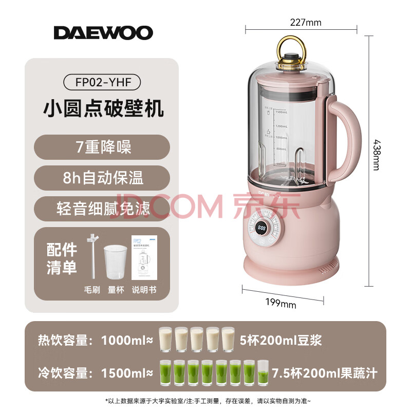 商品相册:大宇(DAEWOO)破壁机低音豆浆机迷你全自动免手洗搅拌机营养调理机家用可榨小米糊FP02樱花粉第