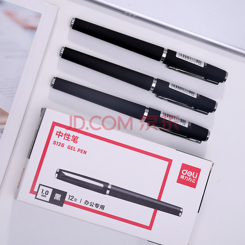 商品相册:得力(deli)办公1.0mm中性笔签字笔水笔 办公用品 子弹头黑色12支第