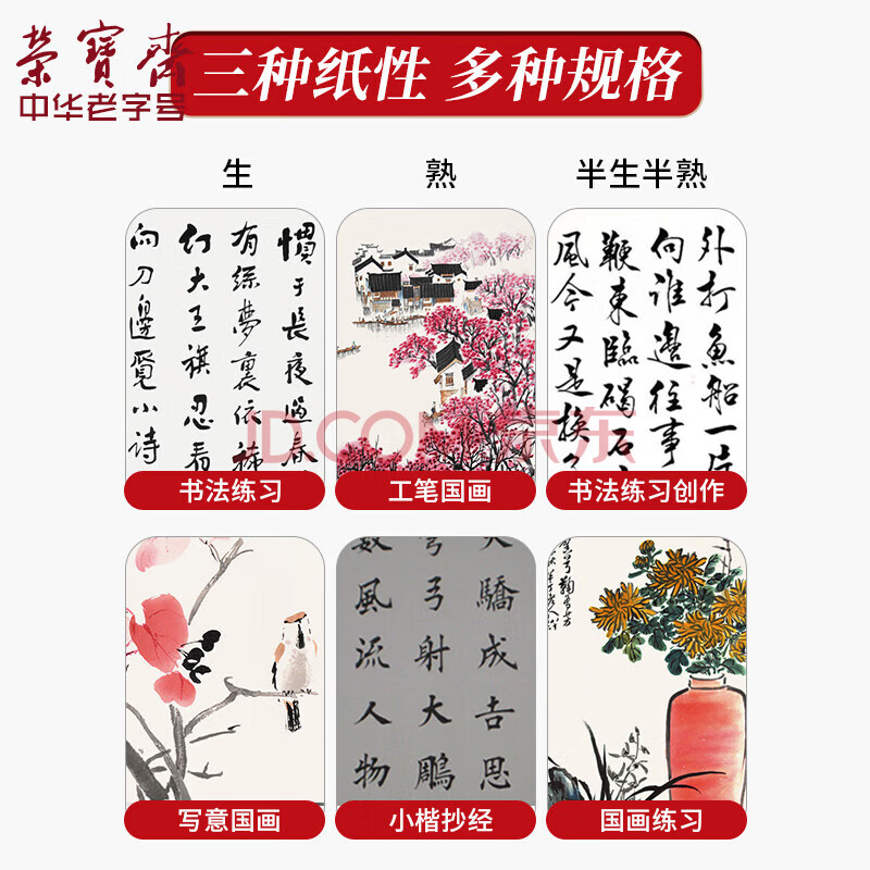 商品相册:荣宝斋【全网低价】 书画纸宣纸 生宣日星书法国画专用纸毛笔初学练习创作四尺对单开入门 生宣-四尺整刀第