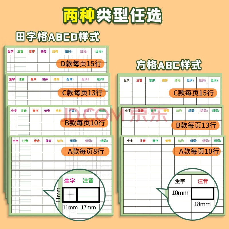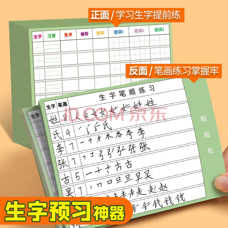 商品相册:六品堂生字预习卡语文自粘小学生一二三年级通用上下册生字表课前练习笔画训练单词空白双面预习纸第