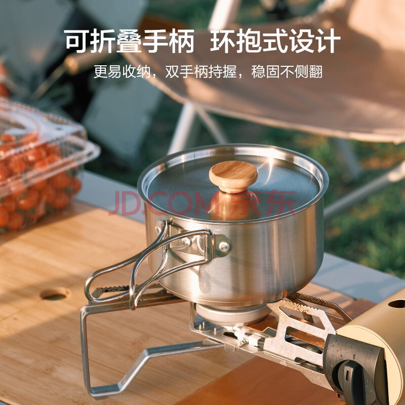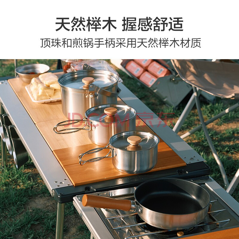 商品相册:京东京造 304不锈钢户外锅具四件套户外露营炉具炊具野餐装备套锅煎锅汤锅第