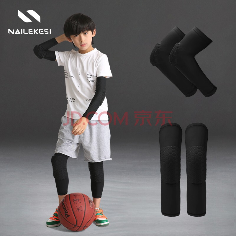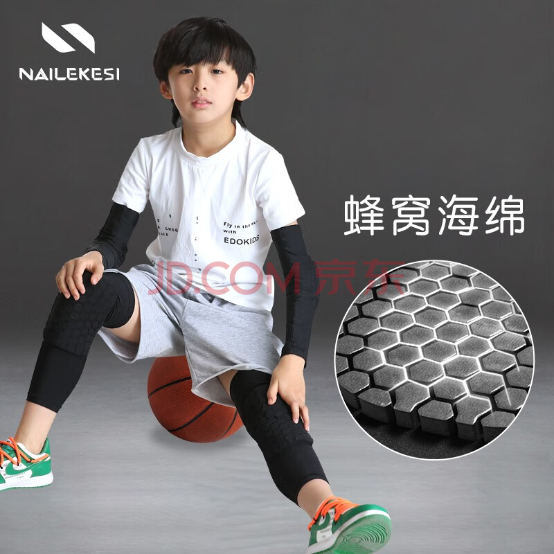 商品相册:耐力克斯运动儿童护膝护肘守门员篮球足球蜂窝防撞护具训练护腿半月板膝盖第
