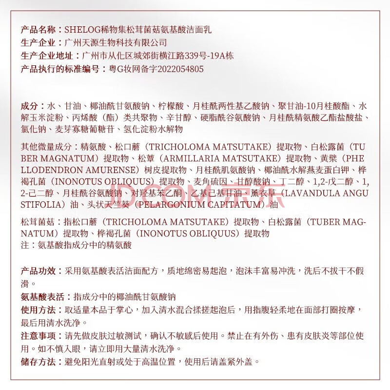商品相册:稀物集洗面奶女士松茸菌菇氨基酸洁面奶男士深层清洁面乳100g第