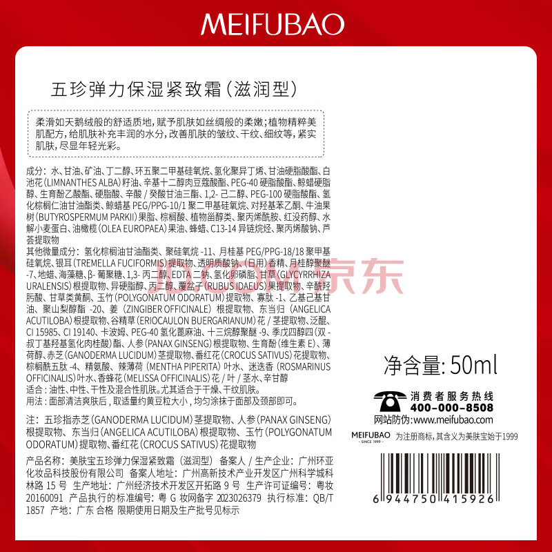 商品相册:美肤宝五珍弹力保湿紧致霜(滋润型)50ml 淡化细纹提拉紧肤面霜护肤品第