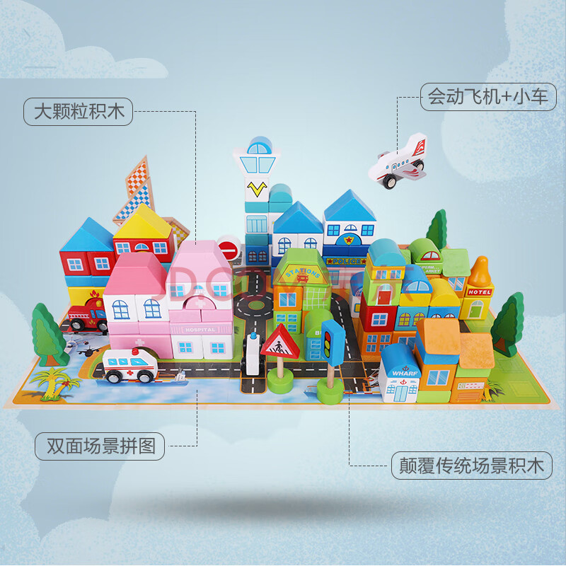 商品相册:铭塔200粒建筑师积木儿童玩具木头木制质拼装图男女孩生日礼物第