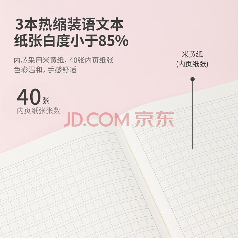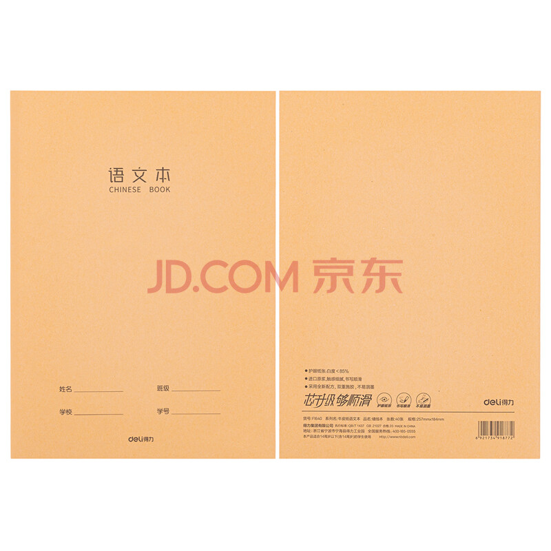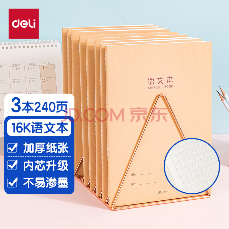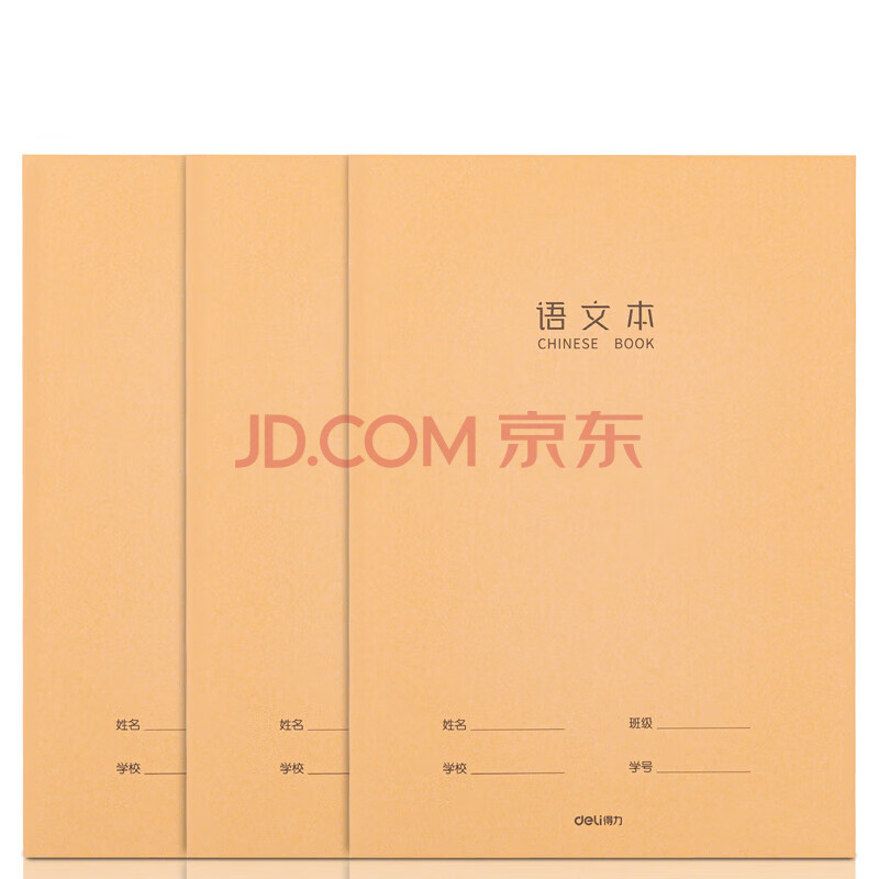 商品相册:得力(deli)牛皮纸语文本笔记本子缝线软抄本作业本16K40张20行20列3本装F1640-3第