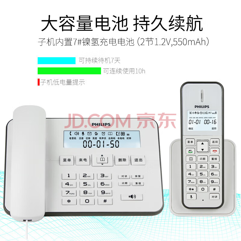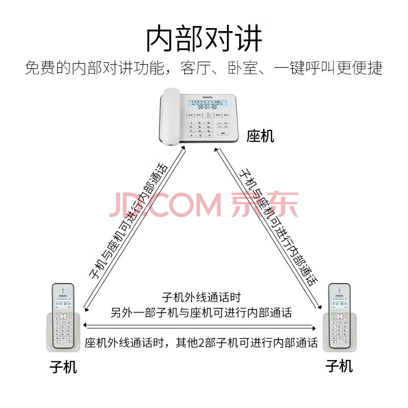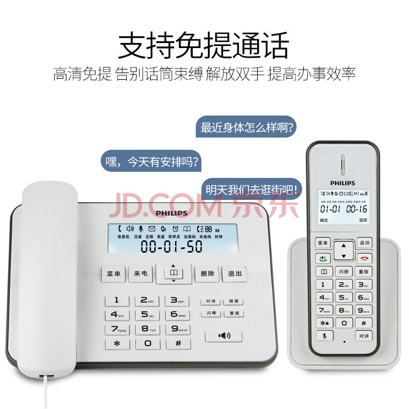 商品相册:飞利浦(PHILIPS)无绳电话机 无线座机 子母机 办公家用 中文菜单 双免提 扩展子机 DCTG192白色第