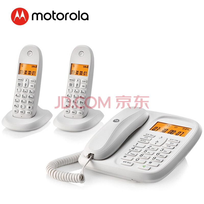 商品相册:摩托罗拉(Motorola)数字无绳电话机 无线座机 子母机一拖二 办公家用 中文显示 双免提套装CL102C(白色)第